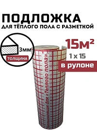 Подложка для теплого пола с разметкой ИЗОДОМ ТП ПЛ 3 мм (1*15м) 15 м2