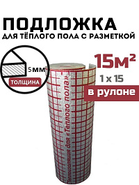 Подложка для теплого пола с разметкой ИЗОДОМ ТП ПЛ 5 мм (1*15м) 15 м2